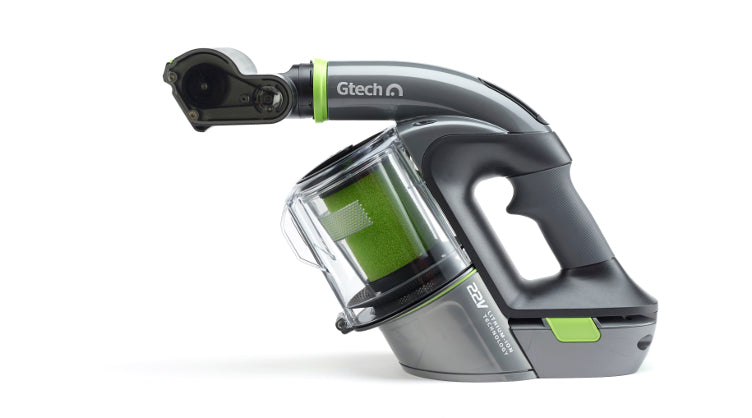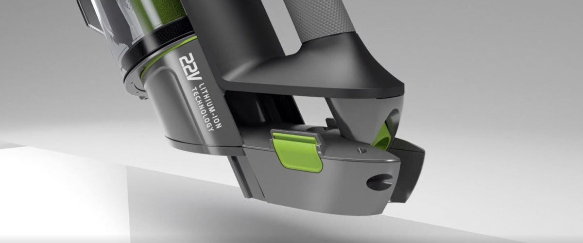 Der Gtech Multi Akku kann kinderleicht eingesetzt werden. Drücken Sie einfach den grünen Knopf auf der Seite und ziehen Sie den Akku heraus. Der Akku wird dann wieder ohne weiteres eingesetzt.